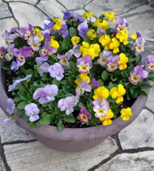 こちらはピーチとライム、パンビオ、アリッサムの寄せ植えです。前のパンビオが主役に見えるかもしれませんが、この寄せ植えは、ウインティーがあるからこその満足感🤤💕最高💞単鉢でふわっふわに咲くウインティーも素敵だけれど、寄せ植えで、主役でも脇役でも活躍してくれるウインティーが大好きです😊💕