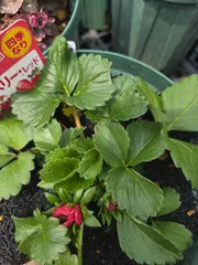 秋に植えた「らくなりイチゴ」🍓ようやくお花が咲いてきました🌸成長が楽しみです😍❤️