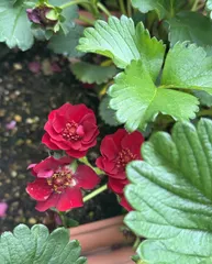 本気野菜のローズベリー・レッド、可愛い花がたくさん開花してきました💕いちごもたくさんなるといいなぁー🍓