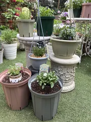 アンバサダー苗植え付けました🌱 第5期サンフラアンバサダーで頂いたお花たちを植え付けました🤗サフィニアプチひつじもこもこはタグにノーピンチでもこもこと書いてあったのでそのまま植え付け☝🏻ミリオンベルピンクはちょっと伸びて来ていたのでピンチして植え付け🪴どちらも多肉中年さん考案のプッチン植えしました🙌🏻エンジェルスイヤリングと星空マ