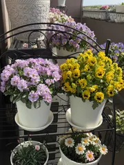 フィオリーナ6色が入ってます❤️発根してるのに、なかなか鉢上げできなくて、お正月に植えました🌱2鉢に分けるつもりでしたが、数で盛っちゃえ❣️と1鉢(35㎝)に🤣ちょっと窮屈そうです🙏レッドフレアは上手く発根できず、超レアになってます🤭今は2輪咲いてます🌼✏️追記6色だとちょっとうるさいですね🤣散らさ