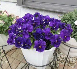 ミルフル ミックスフリル こんにちは♪ ブルーのお花がよく咲ています。 5号鉢に1株植え。上から見ると隙間がありますね(^_^;)本格的は開花は春。そのころには密に咲いてくれるでしょう。