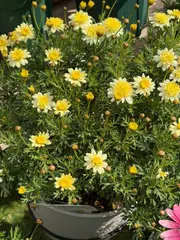 ボンザマーガレットピンクレモネード🍋 えっと、こちらはいつお迎えしたかな?…去年の3月でした😊🌸ボンちゃん多すぎて…記憶力…😇笑今月でちょうど1年経ちますね✨レモンイエローに次いで、2番目に開花が早かったです✨他の子はまだまだ蕾です🥹