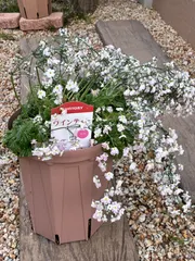 先日届いたアンバサダー苗の植え付けをしました🌱■サフィニアプレミアムシリーズ ブルーピンチして8号鉢に■サフィニアプチ ひつじもこもこピンチして6号鉢に■ミリオンベル ピンクピンチして6号鉢に■星空マム ブルーノーピンチで7号鉢に■エンジェルスイヤリング ピンクオパールノーピンチで7号鉢に■リトルチ