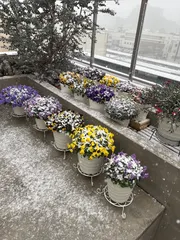 昨日フィオリーナの成長が遅いよ〜とおハナしのほうで投稿をしたばかりですがとうとううちのお庭にも雪が少し積もってしまいました❄️ 私がお花を育てはじめてから雪が積もるのははじめてです☃️雪に慣れてないのでこれだけでも焦ってしまいます😂 お花はどうなるんだろうと心配になりますがもっと
