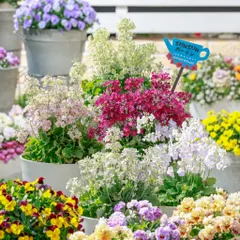 多肉中年のガーデニングウインティー予想通り、咲き揃いませんが‼️早い花は痛みはじめてきたので全色で記念写真アンティークカラーで背も高くこの時期のお花ビオラとの共演に欠かせないいつも背景役の助演俳優はウインティー🥰今回は主役で❣️
