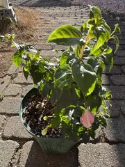 挿し芽のエンジェルスイヤリングピンクオパールです🩷お花も咲いて、つぼみもあります デュアルパールにも小さいつぼみがあります デュアルパールの親株です枝が伸び放題で木質化していますが、12月に少し切り戻しをしたら新芽が出てきました🌱 つぼみは取った方がいいと思いつつ、かわ