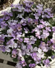 ベルベットゴールド💜💛切ってみました✂️ この日から(2月2日)伸びてしまったので、迷ったけど切り戻ししてみました✂️…あー切らないでそのままにしておけばよかったかも?💧ようやくお花咲いてきたけど もう結構暖かいよね☀️😂オーロラはパッカンし始めてる中、ベルベットゴールドは葉っぱも冷たく しゃりっとしててこちらの方が元気は元気です♪