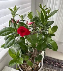 氷点下の冬場は玄関内で冬越ししていたクライミングサンパラソルのホワイト。少し暖かくなって他の冬越し株達と共にお庭に出したあと、まだ寒い日があって落葉してしまいました😅耐寒性は5℃くらいまでって言われてるからマーガレットと同じ扱いが良いんだろうなぁ💦ダメかなぁと思っていたんですが昨日新芽らしきものを発
