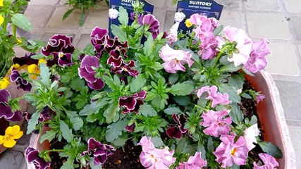 サンフラmasで投稿したフィオリーナがほぼ満開になりました🏵️桜の咲く季節に満開を愛でられるのは、秋冬苗の良いところですね🎵春に植えた苗もここ1週間で動き出してきています。園芸シーズン到来!皆さまと楽しんでいけたらと思っています🎶