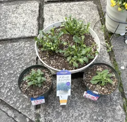 お迎え苗植えました 昨日お迎えした、ももいろハートと小梅ちゃんは、5号スリット鉢に植えました。アズーロコンパクトブルーウィズアイは、3株植えにチャレンジです!8号平鉢に植えました♪夏越し頑張る💪