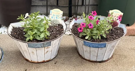 お迎えしました🌱 昨日、コメリ、コーナン、地元ホムセンをはしごしてきました😊みなさんのお迎え、植え付け投稿見て、出遅れ感があったのですが、🟧になり、やっとお迎えできました😆プチとブーケ、ミリオンベルプチホイップの単色は初めてのお迎え今年のサフィニアPREMIUMは新色のみお迎えのつもりですというのも昨年のレッド、パー