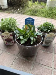 仮植えしました サフィニアプチのひつじ🐏とあずき🫘サフィニアアートのとらネコ🐱🐯5号鉢に仮植えしました最終的には8号鉢に植え替えします