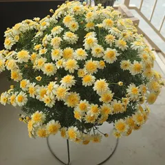 ボンちゃんレモンイエロー ボンザマーガレットのレモンイエロー💛満開までもう少しかな🪴 9年前初めて育てたマーガレットはこのレモンイエローだったので思い出がいっぱいのボンちゃんです🥰