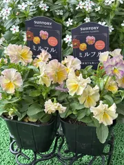 お迎えしました😊💕 毎年育ててるミルフルアンティークフリル今季はこの2苗💕マークがオレンジになったので行って来ました🚗🌬パンビオサントリーさんから始まりました🤗