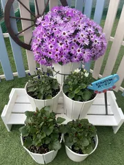 春苗セネッティガーネットが開花しました🌼 植えてから1ヶ月で咲いたよ💕ビビットカラーが可愛い🥰春苗セネッティロイヤルブルー はもう少しです、茎が長いのがちょっと気になりますが😅お手入れは秋苗より断然楽々ですが、綺麗な満開を迎えられるか⁉️楽しみです🎵