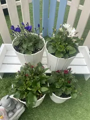 春苗セネッティ植え付けから1ヶ月半経過… 植え付けから1ヶ月半が経過した春苗セネッティ🌸ホワイトレッドアイが1番最初に開花しました😍❤️ロイヤルブルーもきてる✨きてる✨スカーレットも楽しみ❤️ガーネットも楽しみだ〜❤️