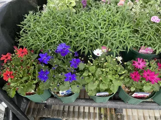植え付けから1ヶ月半が経過した春苗セネッティ🌸ホワイトレッドアイが1番最初に開花しました😍❤️ロイヤルブルーもきてる✨きてる✨スカーレットも楽しみ❤️ガーネットも楽しみだ〜❤️