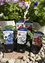 NEW 春苗セネッティお迎えしました 昨年は、スカーレットとホワイトレッドアイの2ポットを育てました。今年は、4色➕1はガーネット💓 毎年4月が誕生日の母にお花を持って行くのですが、今年は、セネッティガーネットにします👍この子なら持ち運びもコンパクトだから、高齢者にも負担にならないですね👍 そして、門扉の横に置いても