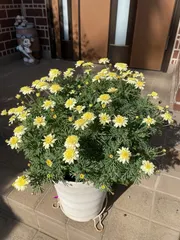 NEW ボンザマーガレット 3年目いい感じに! 昨年夏に、白い綿のような虫?病気?に襲われかなり危なかったですが、無事復活!キララちゃんは、白い綿で枯れてしまいましたが😢3年目でかなり木質化してますが、ふんわりといい感じになってきました🤗レモンイエローに今年も癒されます(^。^)