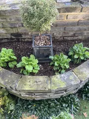左二つはライムグリーン💚右二つはブルーピコティ💙奥にはチューリップ等の球根植えました🌷背面の壁が南側になるので程よく日陰になり、ウインティーとの相性が良いので、毎年ここに植える事に決めています🌱
