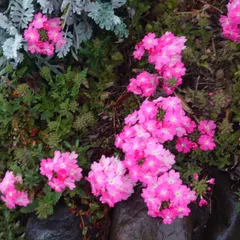 花手毬〜絢〜こいさくら 何度もゲリラ豪雨&雷雨にやられてる花壇のバーベナ花手毬〜絢〜こいさくら🌸 今朝、雨にも負けずたくさん咲いてた😂頑張ってるね、ホントに頑張ってるね😆